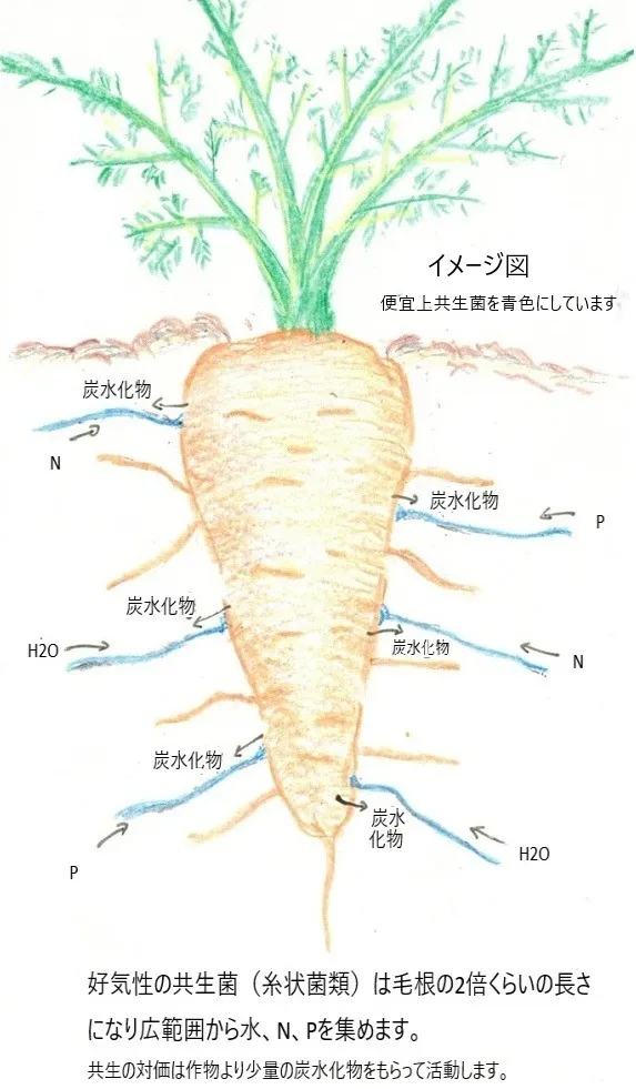 病気の発生、又根、裂根、生育が遅いなど野菜(ニンジン)の栽培でつきものの課題はあります。アプローチの方法も数多あります。阿讃工房では微生物に活躍してもらいこれらを少しでも減らせないか取り組んでおります。